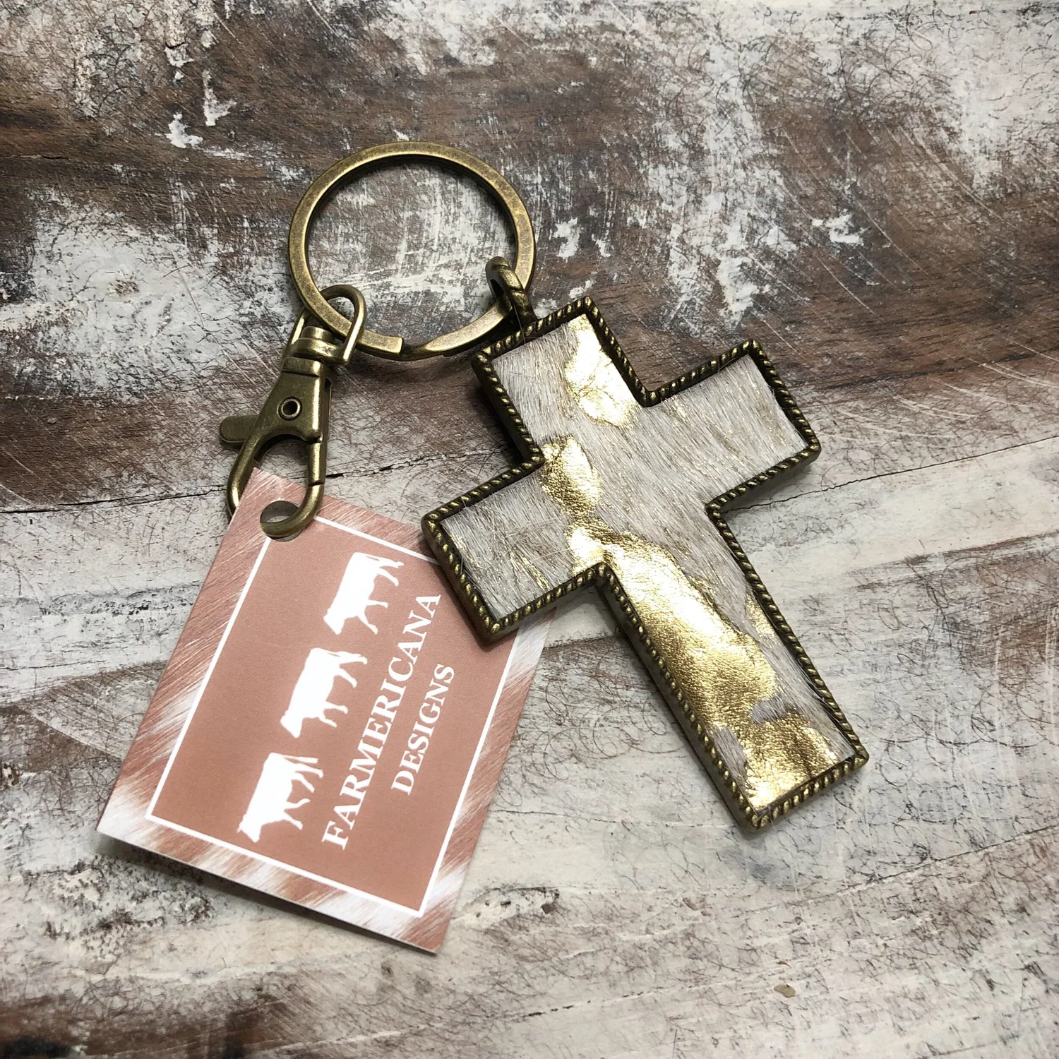 Cross Keyring Gold Speckled Cowhide Farmericana Designs Very well made.