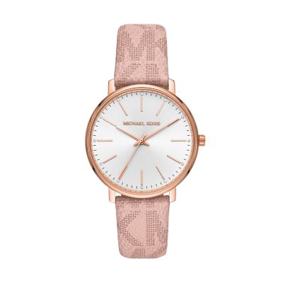 Michael Kors Women s Pyper Leather Strap Watch Pink MK2741 at Very well made.