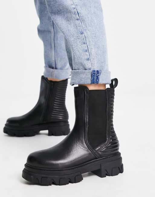 Simply Be Wide Fit leather pull on chelsea flat ankle boots with cleated sole in black Very well made.