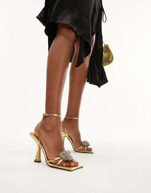 Topshop Casey embellished two part heeled sandal in gold Very well made.